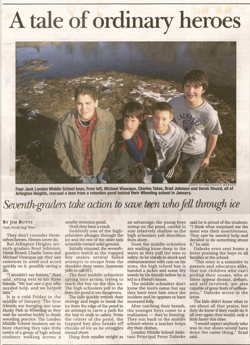 Our Hero, Brad! As Seen in the March 9th, 2005 edition of the Daily Herald, the tale of Brad and his buddies rescue of an older boy who fell thru ice is published.
