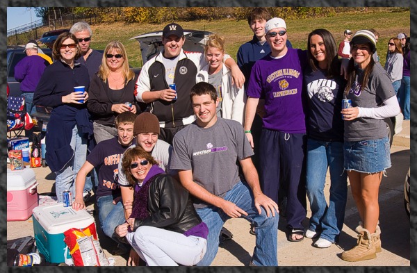 Prior to the game we tailgated outside the stadium with Bryan and his friends. Following that we took in the football game where WIU lost by a point. Picture right is of the entire group tailgating. Unknown woman crouching in front was a picture crasher - no one knows who she is.