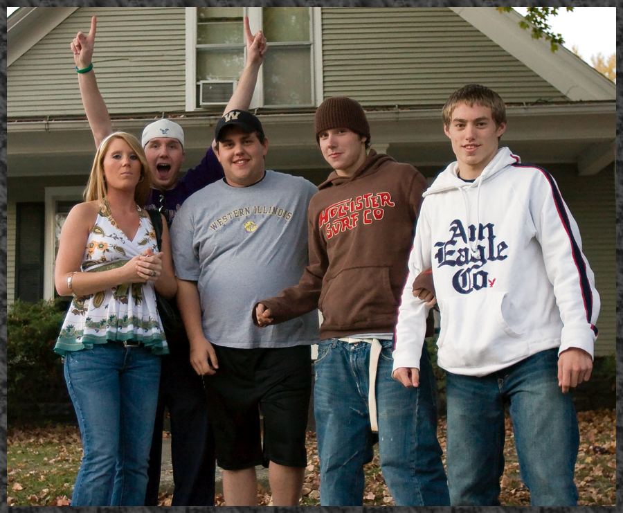 Against my better judgement, Bryan said he would take Brett & Bradwith him to a postgame Keg party promising me that he would ensure that they didn't drink (or snort) a drop! It was odd seeing Bryan with a beer in his hand - but he is over 21 and can legally imbibe without my permission. I, of course don't have to pay for his college anymore, either! Keep that in mind Son! Picture all the way on the bottom is older brother Bryan emerging from the Keg party with Brett, Brad, Kenny and babe Stephanie.