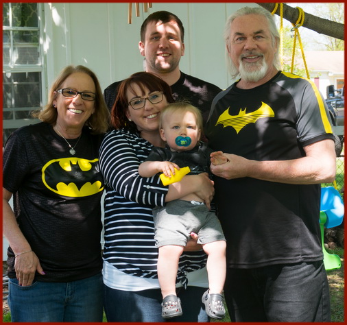 Sabrina's parents Tony & Sue, along with brother Anthony, were all looking smart in their matching Batman shirts - all for Thor as the little Caped Crusader loves all things Batman.