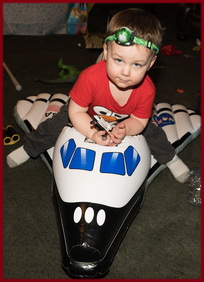 As expected, Kathy went absolutely overboard with gifts. Here's an example... It absolutely warms my heart that Thor loves Space Rockets, specifically the Space Shuttle. He might be the only 2 year old in the world that knows that at Blastoff the pad is drenched with Water to deaden Sound Shock waves AND that the Liquid fueld engines light before the Solid rockets do.