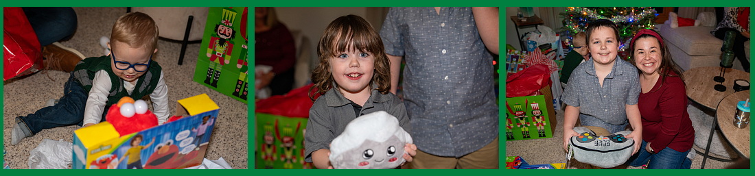 Our 3 grandsons, Thor, Ashton, & Baby Calvin Takashi, were the stars on the day - all excited about their many gifts under the tree. Calvin liked his talking Elmo. Ashton was thrilled with some damn thing called a "Lanky Box" and Thor seemed to like a "Squishy Pillow" used as a Gaming Accessory. I probably have this wrong - but we'll go with it for now.