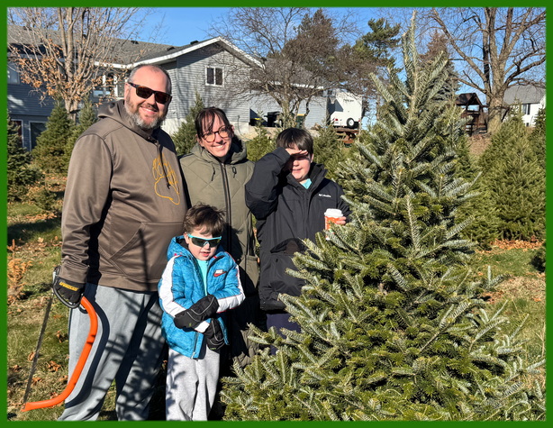 This ritual has become a family tradition of theirs - now at least 4 years running. They cut down their own Tree at a Dairy Farm just over the Wisconsin border In Twin Lakes, WI