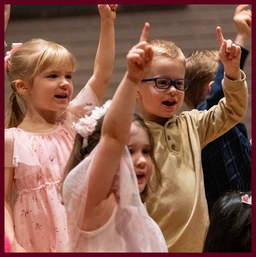 When it was time for Cal's Class to sing, they all congregated in the front of the Sanctuary and belted out 2 songs. One was called "Deep And Wide" and an old favourite I used to sing at Trinity's VBS in the 1960's called "I'm Going To Let It Shine"! Both songs featured dramatic Arm and Hand gestures that Cal delivered masterfully.