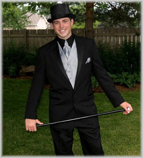 Adorned in a Top Hat, Cane and matching Monacle, Ben escourted friend Rachel to the Buffalo Grove HS Prom held at the Westin Hotel in Wheeling. Rachel is a friend that Ben has known for some time and is editor of the BGHS newspaper. Following graduation she is off to Missouri to study Journalism.