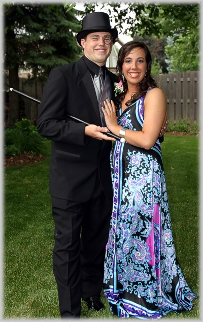 Ben & Rachel were joined by 3 other couples who as a group first gathered at our house for photos before they were off to the dance. As you can see Rachel looked beautiful in her lovely gown and other than the goofy Monacle, Ben looked great too.